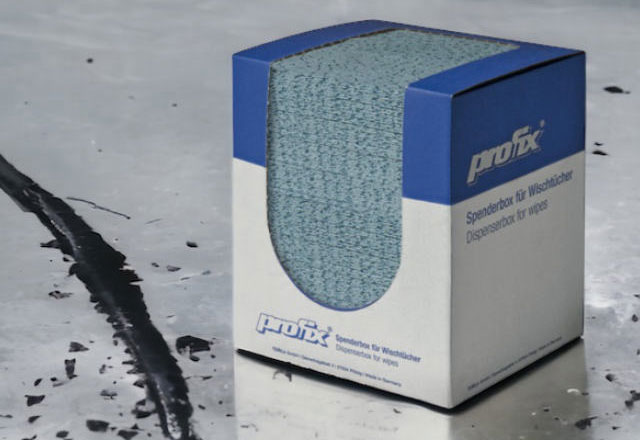 X because it has a special irregular X-embossing to to capture and retain liquids, chippings and/or machining waste. Due to its composition, it does not shed lint or residues on treated surfaces.