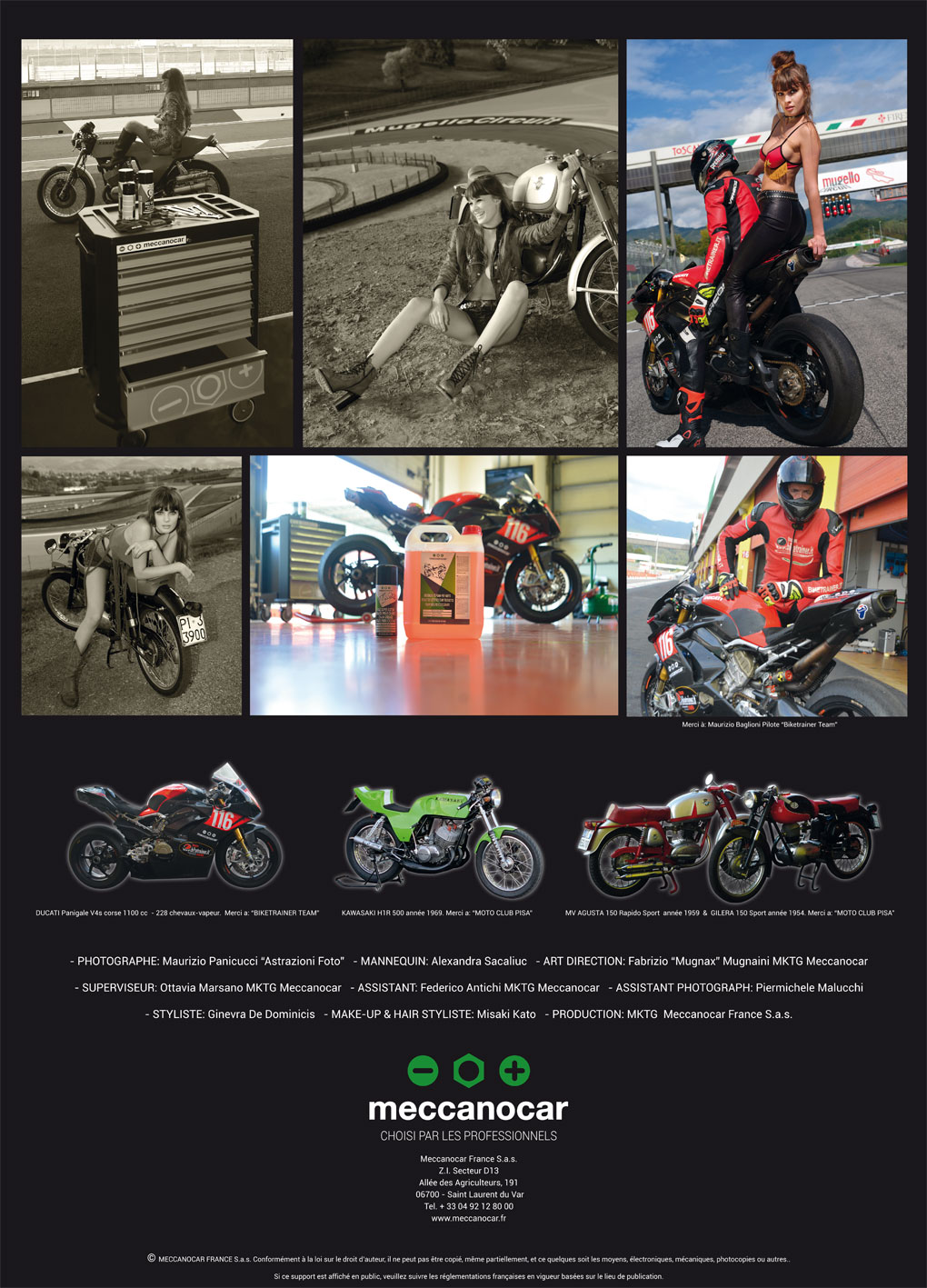 Dans le circuit le plus apprécié des Italiens, le Circuit du Mugello, la belle Alexandra Sacaliuc photographiée par le photographe Mariuzio Panicucci a réussi à interpréter au mieux "le style Meccanocar".