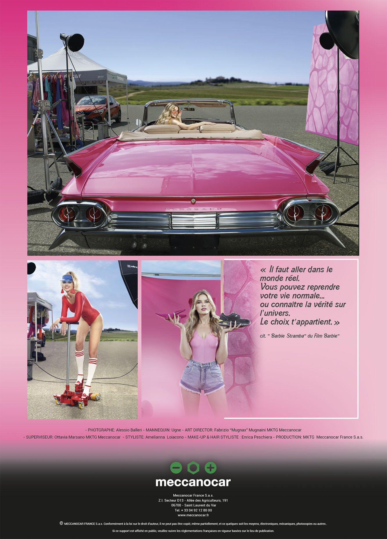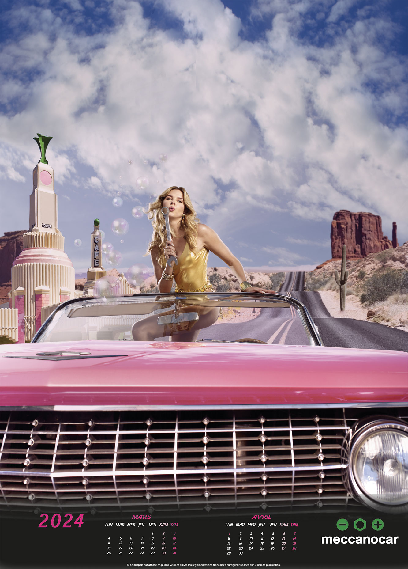 Cette année, Meccanocar fait un clin d'œil à Hollywood avec le film Barbie. Bien plus qu’un succès, c’est une révélation et une brillante réflexion sur l’apparence féminine d'aujourd'hui. Un film qui, uniquement en Italie, a rapporté bien plus de 32 millions d'euros.En passant du vert au rose dans un éclair de créativité, le calendrier 2024 est teinté des tons Barbie. La poupée intemporelle se retrouve immergée dans l'univers Meccanocar en 7 magnifiques clichés. Un calendrier original, frais, ironique et iconique dont Meccanocar se souviendra.